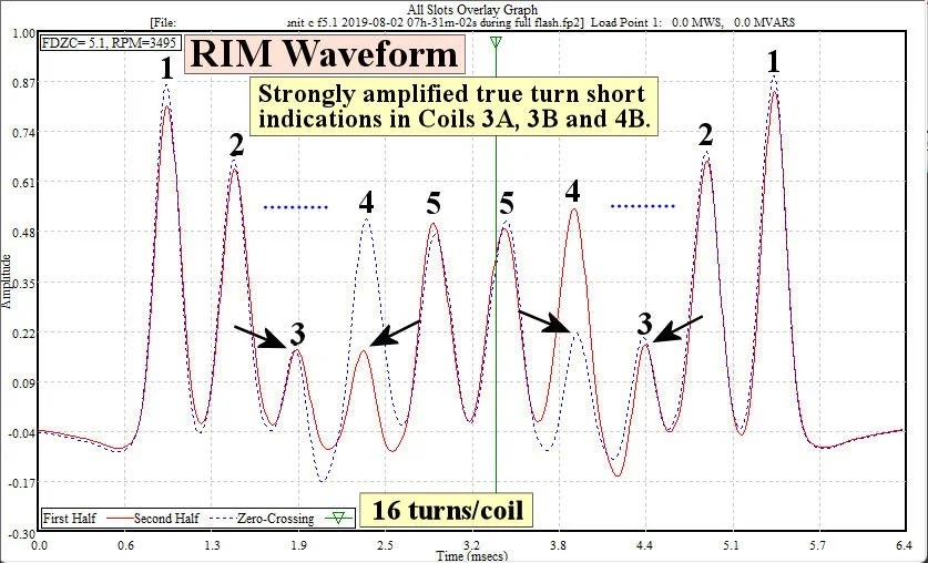 RIM waveforms cannot be used to quantify the number of shorts that are in a coil, but they provide strong confirmation of the shorts seen in the on-line data.