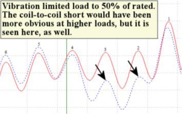 Figure 9 - Lead Slot Overlay Graph that shows the Coil 2B-Coil 3B short. Higher loads would have shown the coil-to-coil short much better than this, but rotor vibration was limiting load to less than 50% full load.